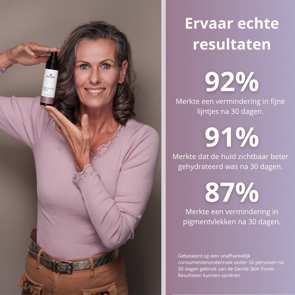 Gebaseerd op een onafhankelijk consumentenonderzoek onder 50 personen na 30 dagen gebruik van de Gentle Skin Toner. Resultaten kunnen variëren.
